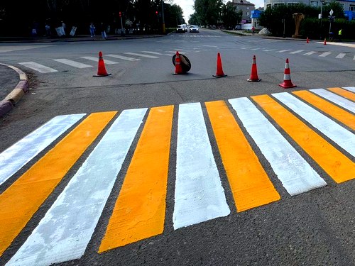 Пешеходные переходы, покраска бордюров