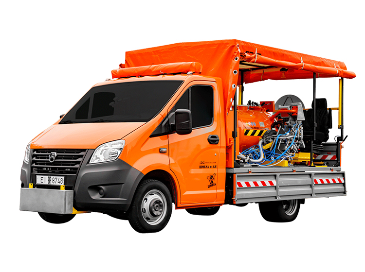 Машина имеет сравнительно малые габариты и высокую маневренность, благодаря которым прекрасно подходит для разметки не только для магистральных дорог, но и городских улиц.